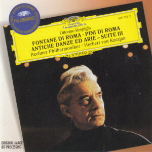 流れるように歌われるレスピーギはいかにもカラヤン流で「ジャニコロの松」での茫洋とした演奏が美しい。かつて大阪公演がテレビ放映されたとき、この部分でのカラヤンのバトン・テクニックに感動したのを思い出す。『リュートのための古代舞曲とアリア』も上品な味わい。(★★★)